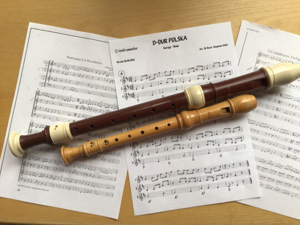 Enten andre blokfløjter eller andre instrumenter. Klaver, guitar, harmonika eller andet.